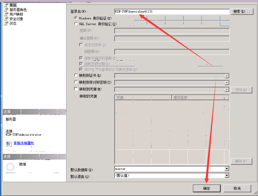 失败信息:连接数据库失败(-2147217843)用户“win-yun-huweishen41131”登陆失败